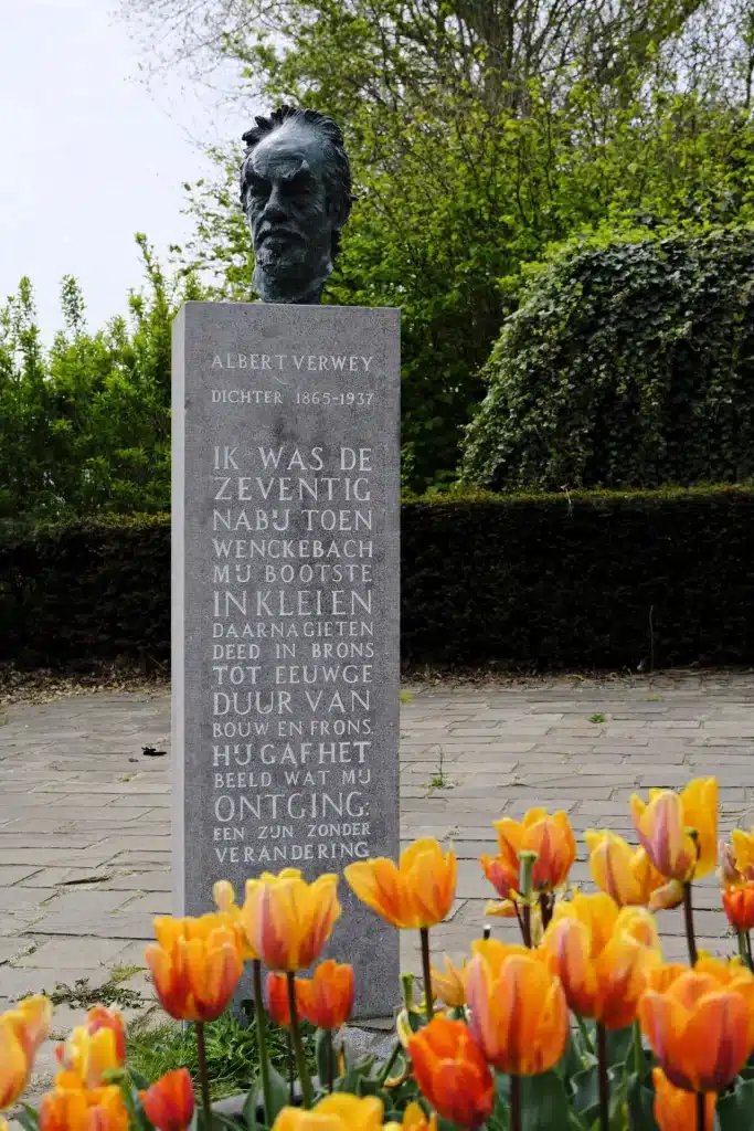 Jarenlang stond ‘Albert Verwey’ precies op deze straathoek op de tram naar Leiden te wachten, hij was hoogleraar aan de universiteit Leiden. Daarnaast was hij ook dichter, essayist en vertaler.
