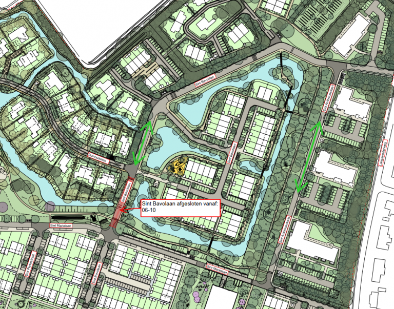 Sinds maandag 6 oktober is de Sint Bavolaan in Noordwijkerhout gedeeltelijk afgesloten in verband met het aanleggen van een duiker (buis onder de weg). Deze werkzaamheden duren naar verwachting ongeveer 3 weken. Gedurende deze periode is het advies om via de Sint Antoniusstraat en de Sint Marielaan de wijk te verlaten en/of in te rijden.