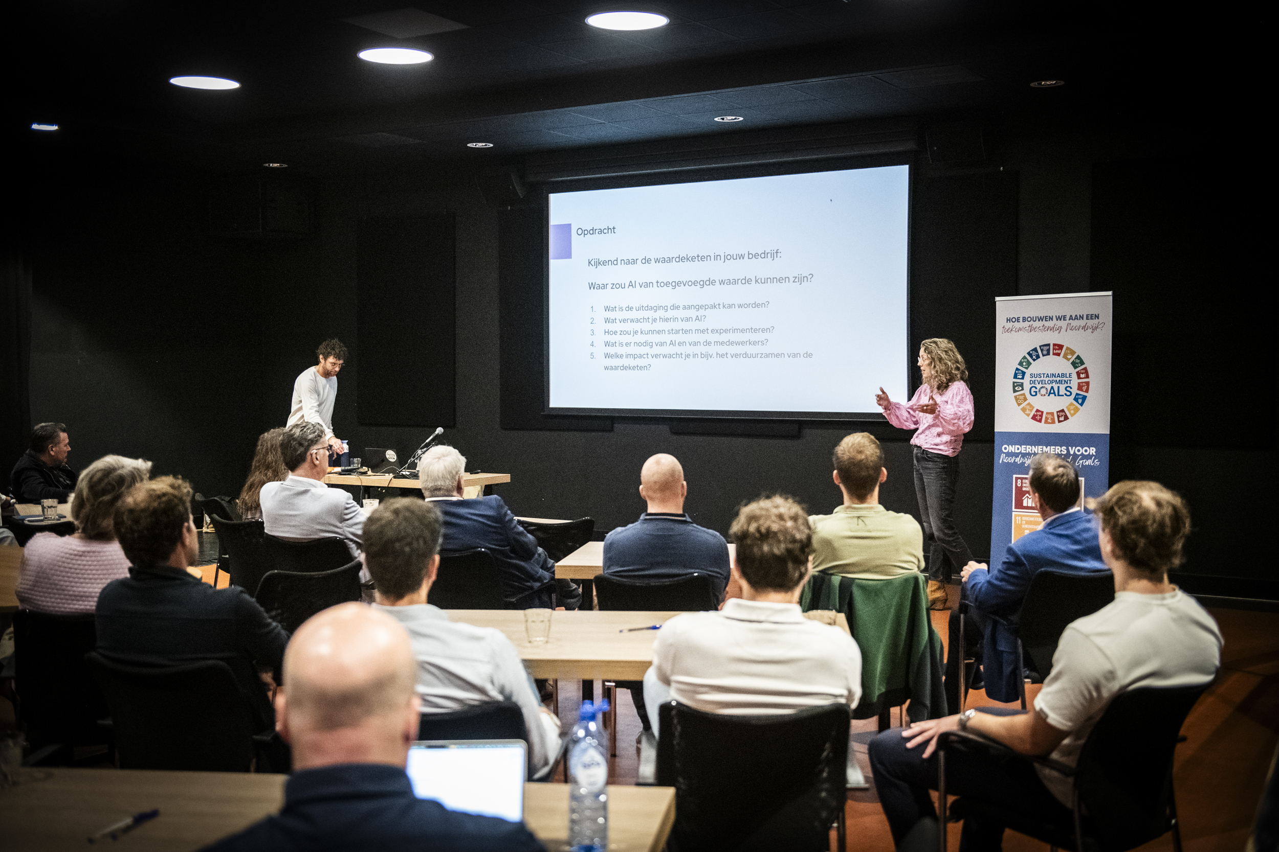 Kunstmatige intelligentie (AI) klinkt voor sommige ondernemers nog steeds als toekomstmuziek, maar tijdens de 3e Global Goals ontbijtbijeenkomst van dit jaar werd in Theater De Muze duidelijk: de technologie biedt nu al volop kansen voor ondernemers.